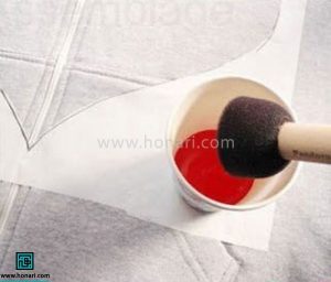 در مرحله هفتم، نوبت به آماده کردن رنگ مخصوص پارچه و قلموی استنسیل یا ابر میرسد.