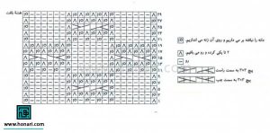 در رج بعدی، تعداد دانهها را به ۴۱ دانه کاهش دهید و مطابق نقشه، ۲۵ سانتیمتر ببافید.