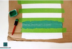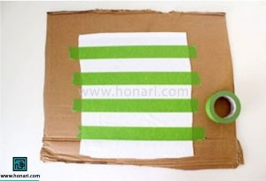 قدم اول: ابتدا چسب را به صورت خطهای منظم و با فاصلههای یکسان روی تیشرت بمالید.