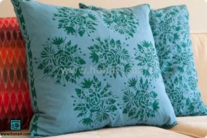 میتوانید با بهکارگیری رنگ مخصوص پارچه، هر طرحی که دوست دارید را روی کوسنهای ساده چاپ کنید. این کار با روش نقاشی روی پارچه انجام میشود.