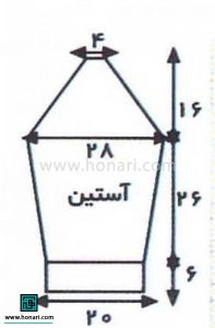 وقتی قد بافت به ۳۱ سانتیمتر رسید، برای قسمت حلقه آستین، در ابتدای هر رج از یک سمت، یک دانه کم میکنیم.