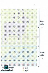 هنگام بافت نقشه شماره ۱، از هر دو طرف و هر ۸ رج یک‌بار، یک دانه اضافه می‌کنیم.