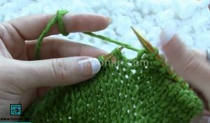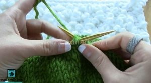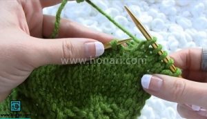 در رجهایی که همه دانهها را از زیر میبافید، بعد از بافتن حدود ۵ تا ۶ سانتیمتر، یک قانون جدید اضافه میکنید: بعد از هر ۵ دانه، یک دانه اضافی ببافید.