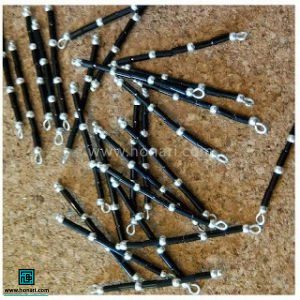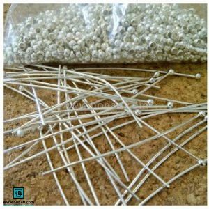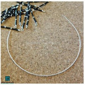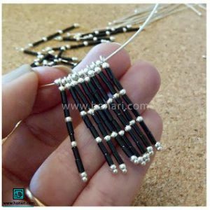 سیم را از داخل حلقهی روی سوزنهای میخی رد میکنیم و بین هر دو سوزن، یک مهره نقرهای قرار میدهیم.
