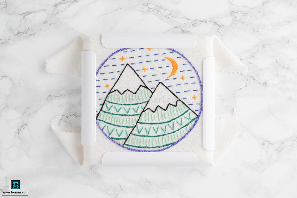 من دوست دارم از یک کارگاه گلدوزی استفاده کنم که از طرحی که می‌خواهم روی آن کار کنم، کمی بزرگ‌تر باشد. این کار به من امکان می‌دهد بدون اینکه نیاز باشد پارچه را جابه‌جا کنم یا وضعیت کارگاه را تغییر دهم، به راحتی بدوزم و کوک بزنم.