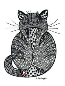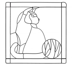 طرحی از تکههای کاشی رنگی به شکل یک گربه