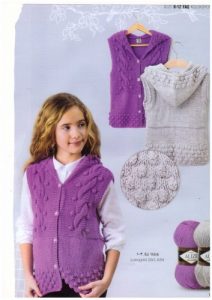 وقتی قد بافت به ۴۷ سانتیمتر رسید، برای ایجاد فرورفتگی یقه از سمت دیگر، به ترتیب ۱، ۱، ۳، ۵ و ۷ دانه کم می‌کنیم. زمانی که قد کار به ۵۲ سانتیمتر برسد، همه دانه‌ها را با هم می‌بندیم. یک قسمت پیش‌دیگه هم دقیقاً به همین روش بافته می‌شود.
