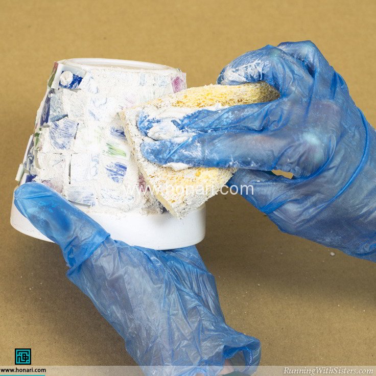 حدود ۱۵ تا ۲۰ دقیقه به گلدان وقت بدهید تا ملات روی آن خشک شود. بعد از آن، با یک دستمال تمیز روی سطح گلدان را پاک کنید.