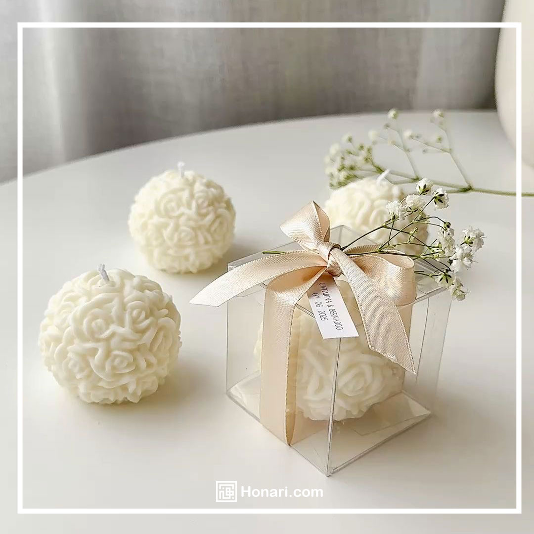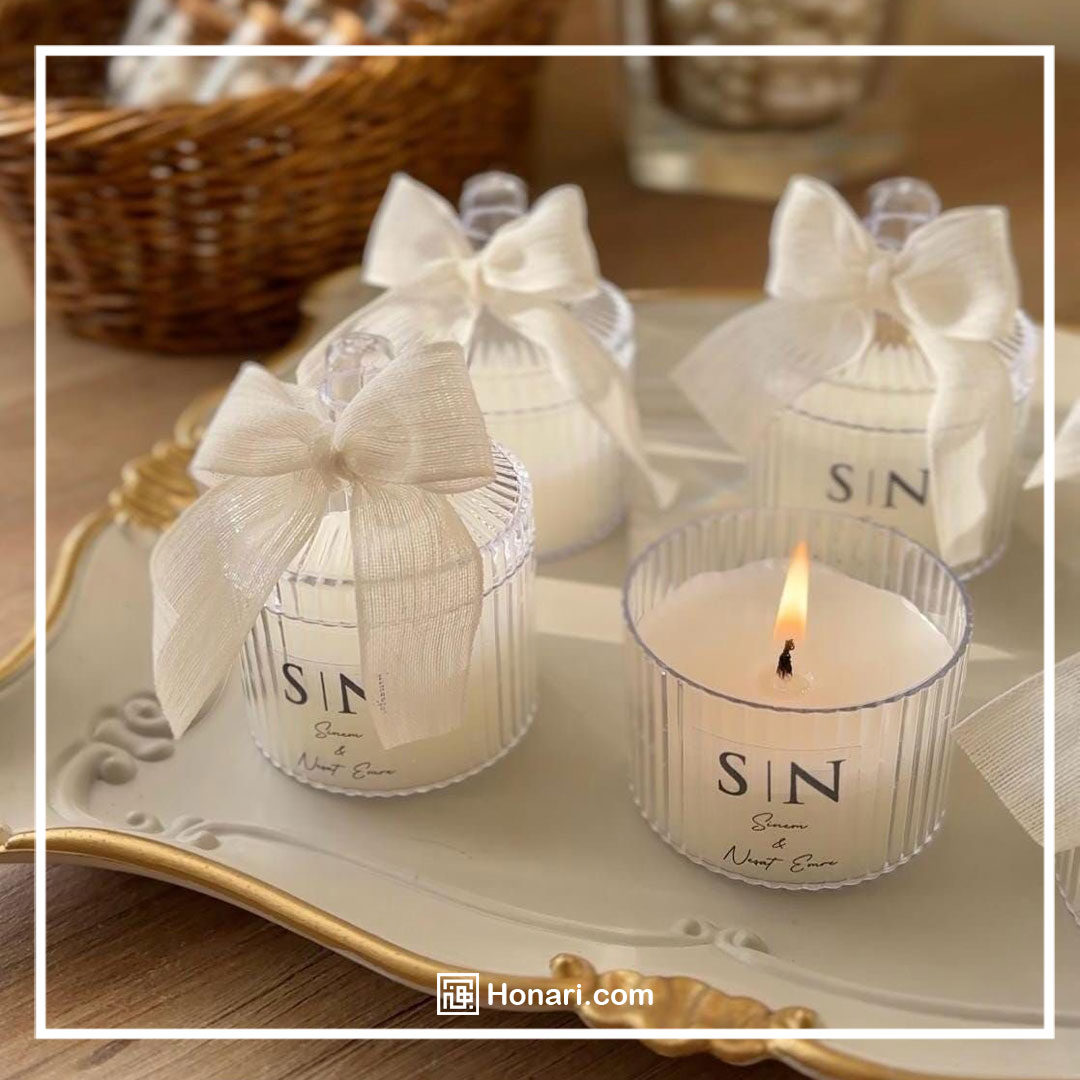 شمع‌های ساخته شده با دست، از دیرباز تاکنون از گزینه‌های بسیار محبوب برای هدیه دادن در مراسم عروسی به شمار می‌روند. عطرهای ملایمی مانند رز، یاسمن یا وانیل می‌توانند حال‌وهوایی آرام و عاشقانه را به فضای جشن بیافزایند و حال‌وهوای دل‌نشینی برای مهمانان ایجاد کنند.