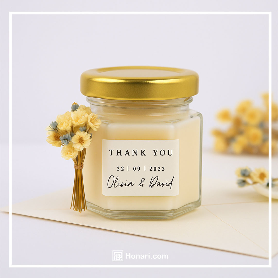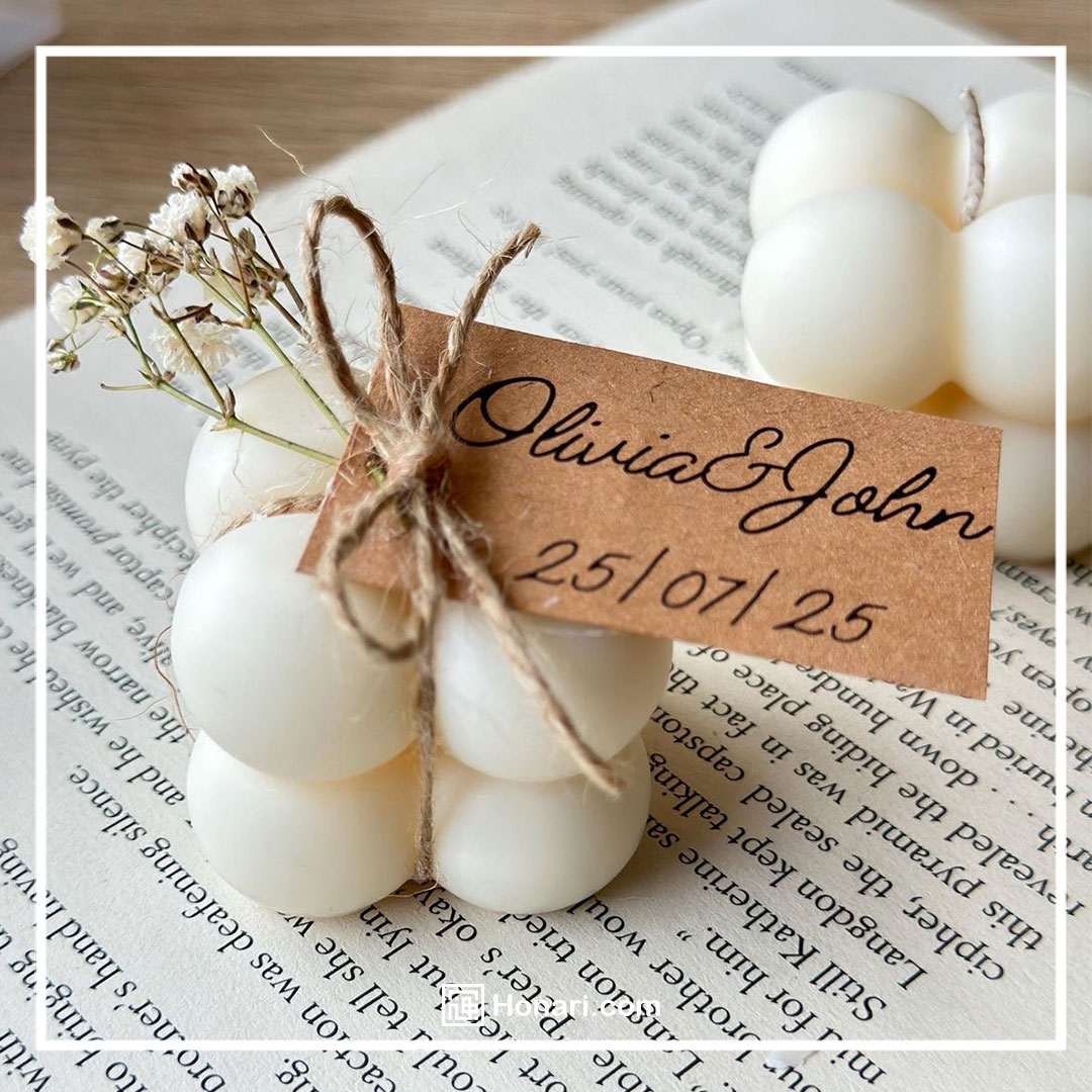 هر وسیله‌ای که نام یا تاریخ مراسم روی آن نوشته شده باشد — چه یک شمع ساده باشد، چه یک لیوان و چه جعبه‌های شکلات کوچک — برای مهمان‌ها به یک یادبود ارزشمند و خاطره‌انگیز تبدیل خواهد شد.