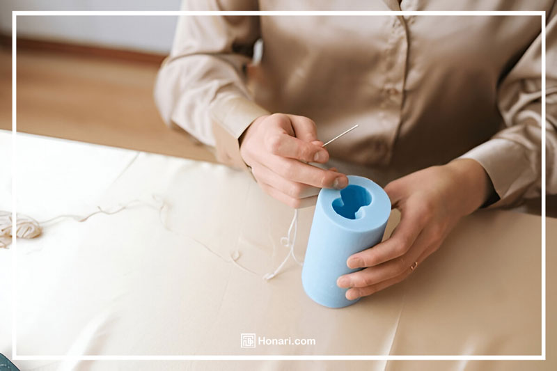 برای درست کردن شمع، گذاشتن فتیله در قالب سیلیکونی مرحله مهمی است. برای این کار، این مراحل را به ترتیب انجام دهید: