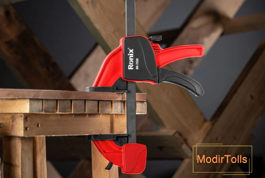 ۱۱) گیره و پرس نجاری: برای ثابت نگه داشتن قطعات در زمان چسبکاری و مونتاژ دقیق.