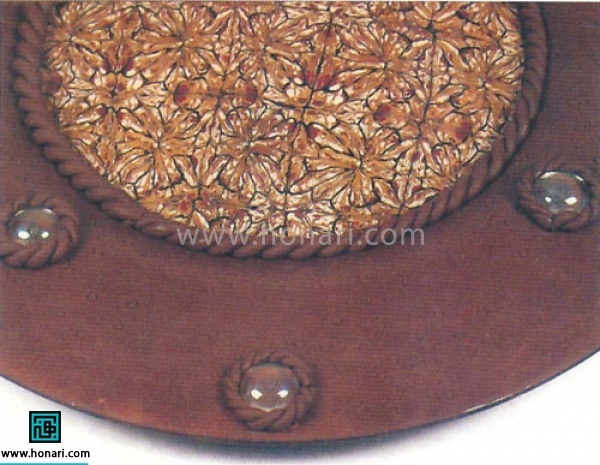 برخی از بخشهای روی سطح دایرهی قهوهای را با رنگ طلایی تزیین میکنیم.