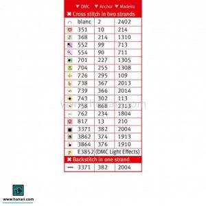 این الگو به گونهای طراحی شده که برای همه، از جمله افراد مبتدی، مناسب و قابل اجراست. هر عدد و رنگ در طرح، نشاندهنده یک بخیه خاص است و به راحتی میتوانید با دنبال کردن آنها، تصویر نهایی را خلق کنید.