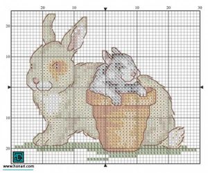 ۱۱ – الگوی شماره دوزی طرح خرگوش و بچه خرگوش