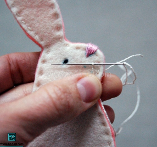 سمت دیگر را نیز تا رسیدن به بدنه اصلی خرگوش نمدی میدوزیم