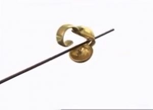 گره مخفیکن را طوری بگذارید که خود گره، درون قسمت برآمده یا کاسهشکل آن قرار گیرد و حلقهاش هم داخل حلقهای که در دست دارید، بیفتد.