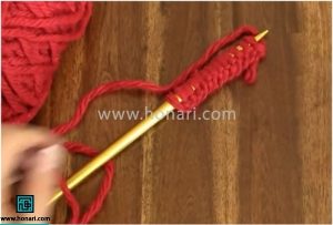 برای این مدل، تنها به یک روش بافتنی ساده نیاز دارید. ابتدا باید به اندازهی لازم از کاموا، دانه سر بیندازید.