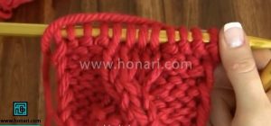 برای اینکه پیچ شما حالت برجسته و نمایان داشته باشد، باید دانههای سمت چپ و راست کاموا بافته شوند.