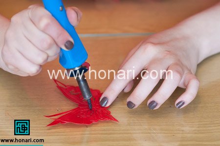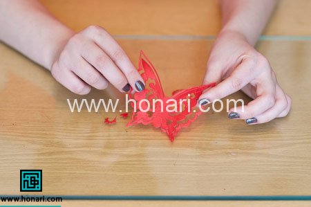 بعد از این که پروانه را جدا کردیم، با استفاده از هویه، طرحها و نقشهای روی آن را خارج میکنیم. فقط باید مواظب باشید که لبهها و کنارههای آن کنده یا جدا نشود.