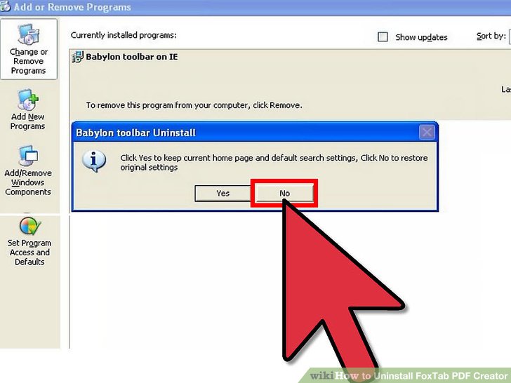 در مرحله هفتم، هنگامی که با بخش “Babylon Uninstall” روبرو شدید، گزینه “No” را انتخاب نمایید.