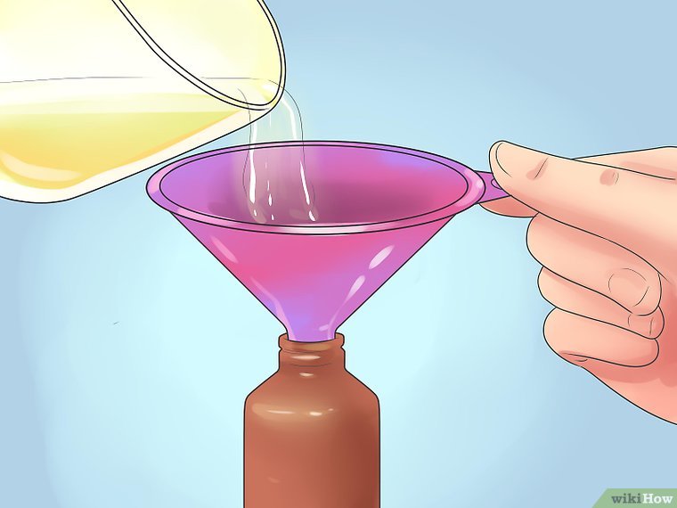 ۴. مخلوط آماده شده را داخل یک بطری یا ظرف مناسب بریزید. برای ریختن راحتتر آن میتوانید از یک قیف کمک بگیرید. بعد از این کار، ژل شما آماده استفاده در مواقع لازم است.