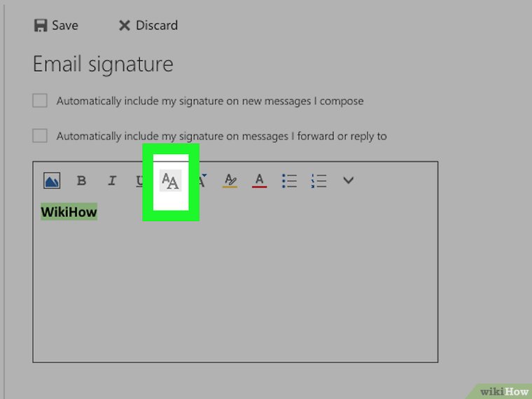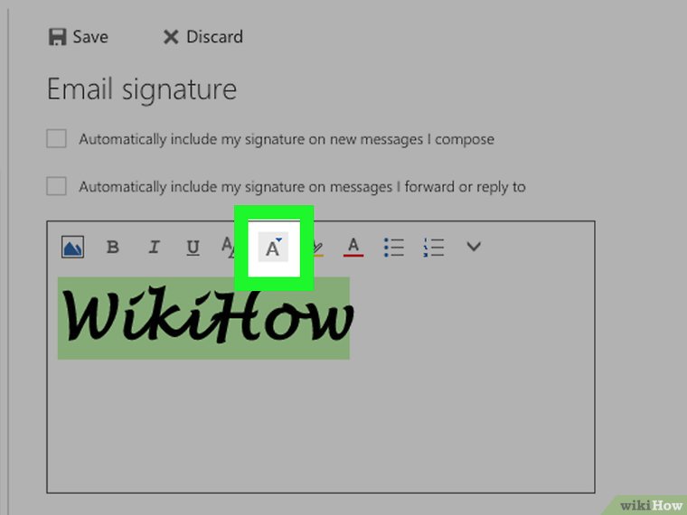 ۸. اندازهٔ امضایتان را بزرگ یا کوچک کنید. ابتدا قسمتی از امضا را که میخواهید اندازهاش عوض شود، انتخاب کنید. سپس روی آیکون A که کنارش یک مثلث کوچک هست، کلیک کنید و یک عدد انتخاب نمایید.