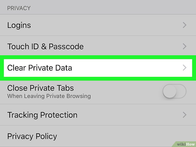 ۶. روی گزینه «پاک کردن اطلاعات خصوصی» کلیک کنید. این گزینه در قسمت پایینی صفحه نمایش قرار گرفته است.