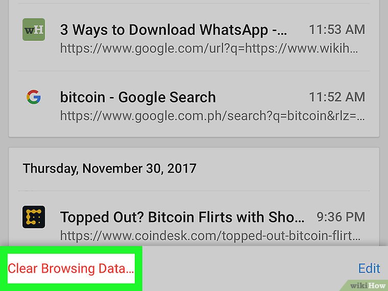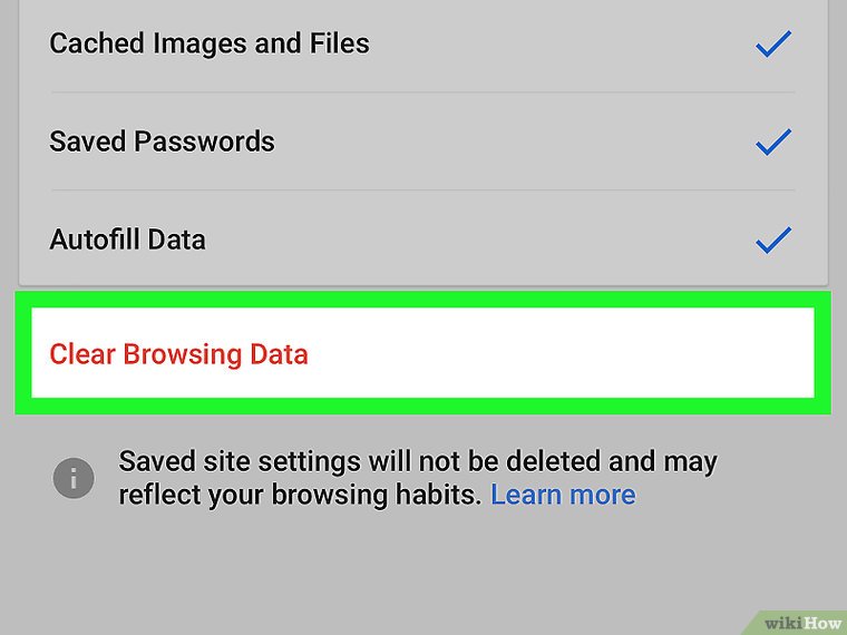 ۶. روی گزینه «پاک کردن اطلاعات مرورگر» کلیک کنید. اگر از گوشی یا تبلت اندرویدی استفاده می‌کنید، به جای آن گزینه «پاک کردن اطلاعات» را انتخاب کنید.