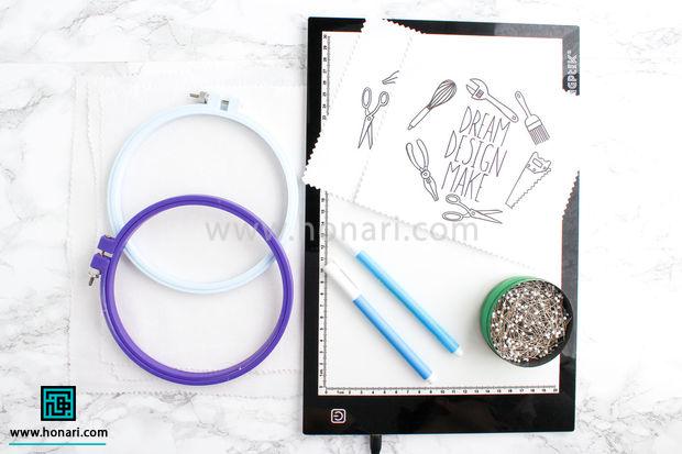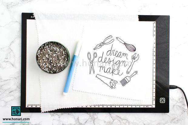 – یک سطح شفاف: این می‌تواند یک پنجره ساده، یک میز شیشه‌ای یا حتی صفحه تبلت باشد تا بتوانید طرح را به راحتی ببینید و رسم کنید.