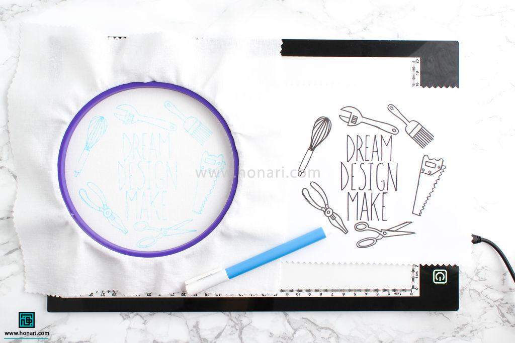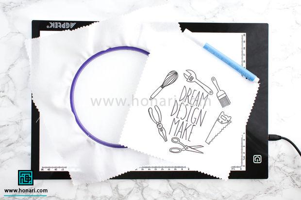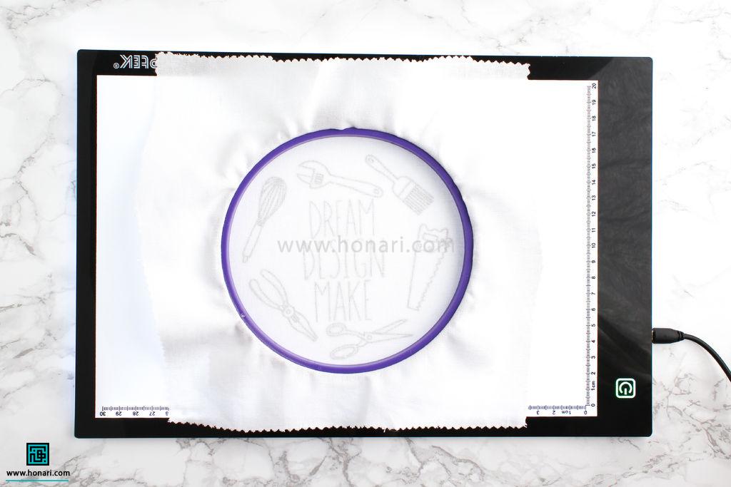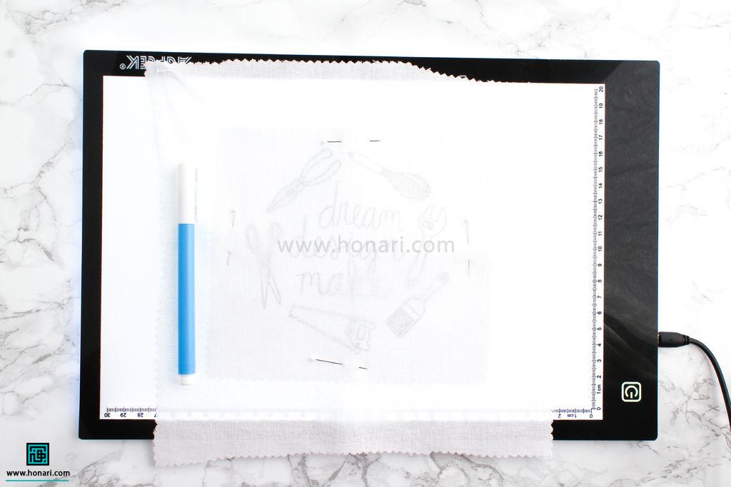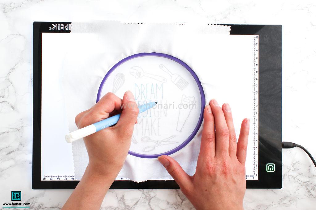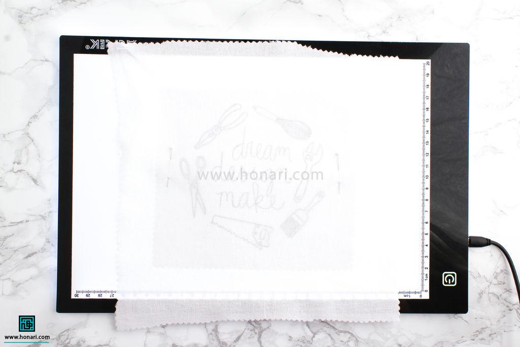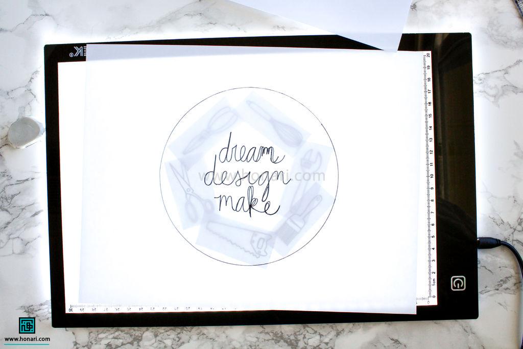 اگر هم از میز نور یا تبلت بهره می‌برید، کافیست کاغذ الگو را روی صفحه آن قرار دهید.