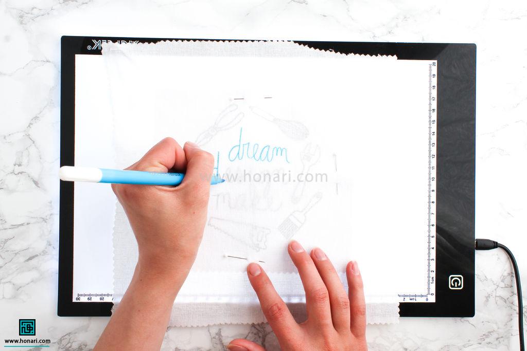و چون پارچه کاملاً ثابت و بی‌حرکت است، می‌توانید با دقت زیاد، تمام جزئیات را روی پارچه رسم کنید.