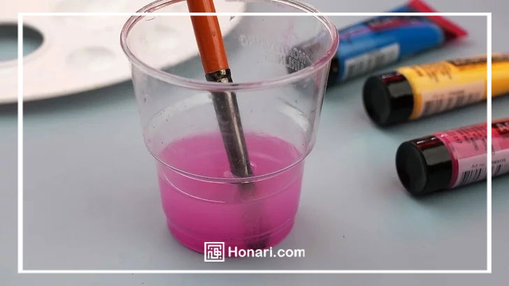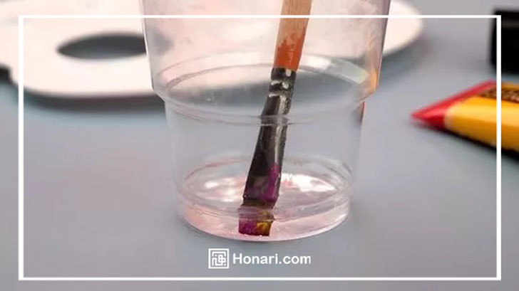 سعی نکنید قلم موی نقاشی خود را برای مدت طولانی داخل لیوان آب قرار دهید. این کار به پرزهای قلم مو آسیب میزند!
