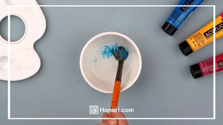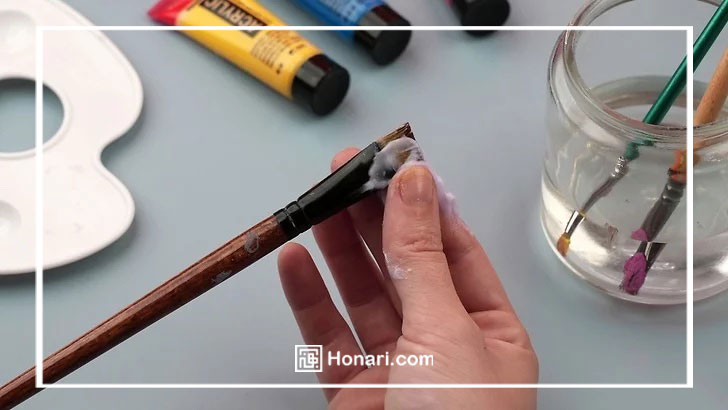 حتی اگر میخواهید دوباره از همان رنگ استفاده کنید، باز هم بین دفعات رنگآمیزی، قلمو را تمیز کنید.