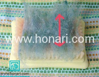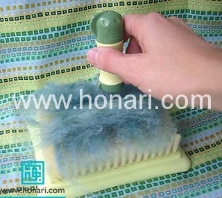 ابتدا مقداری پشم را به صورت مرتب و در یک جهت، روی برس مخصوص پشم کاری پخش کنید.